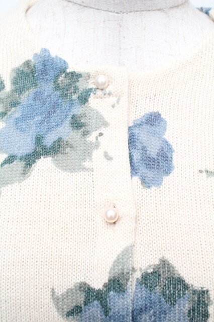 an another angelus / ローズ柄ニットカーディガン オフx青 S-26-01-17-022-CA-TO-AS-ZS