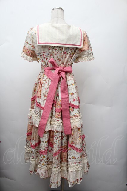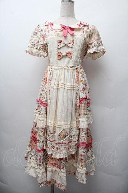 B.Dolly / 花柄パッチワークワンピース ピンクxオフ S-26-01-17-046-LO-OP-HR-ZS