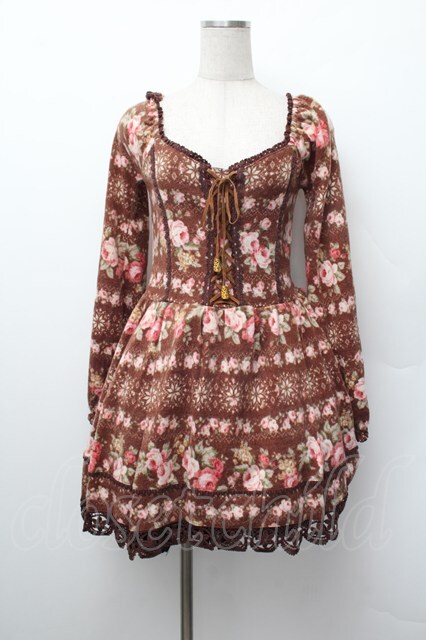 LIZ LISA / 花柄ニットチュニック ブラウン S-26-01-17-056-LO-TO-HR-ZS
