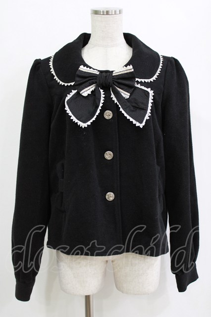 Dear Celine / ストライプリボンコート L ブラック H-26-01-23-028-LO-CO-NS-ZH