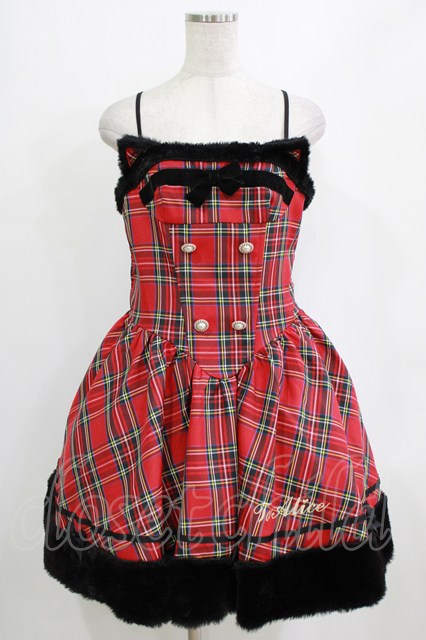 To Alice / ブラックキャットチェックジャンパースカート L レッド H-26-01-23-017-LO-OP-NS-ZH