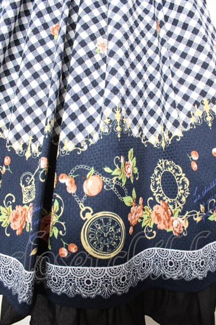 axes femme / ギンガム×花柄ワンピース M 紺 Y-26-01-18-055-AX-OP-SZ-ZY