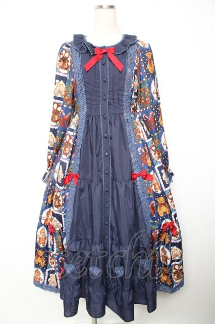 Chalmiere / クリスマス柄ワンピース ネイビー Y-26-01-18-058-LO-OP-SZ-ZY