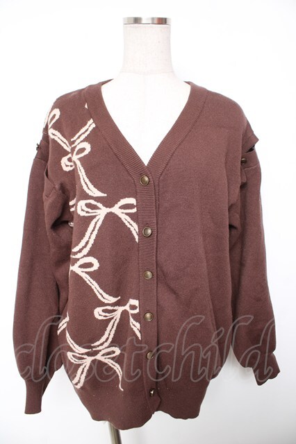 axes femme / リボンジャガードバイカラーカーディガン ブラウン Y-26-01-18-028-AX-TO-SZ-ZY [2100070000059273-Y-26-01-18-028-AX-TO-SZ-ZY]