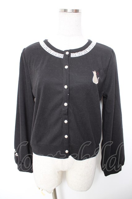 axes femme / 袖口×胸元ネコ刺繍カットカーディガン F 黒 Y-26-01-18-034-AX-TO-SZ-ZY