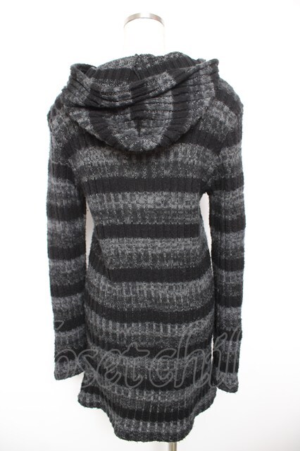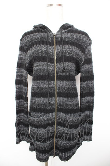 BPN FOR MEN / ボーダーニットZIPパーカー M 黒 Y-26-01-18-042-GO-TO-SZ-ZY