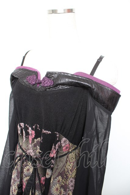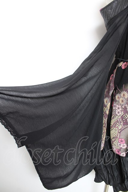 Qutie Frash / ちりめんシフォン着物袖チュニック 黒 Y-26-01-18-048-QU-JA-SZ-ZY [2100070000059390-Y-26-01-18-048-QU-JA-SZ-ZY]