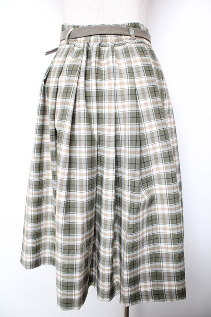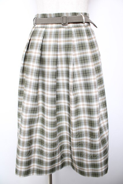F i.n.t / ベルト付きサマーチェックタックスカート F グリーン Y-26-01-18-127-CA-SK-SZ-ZY