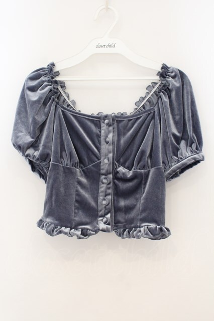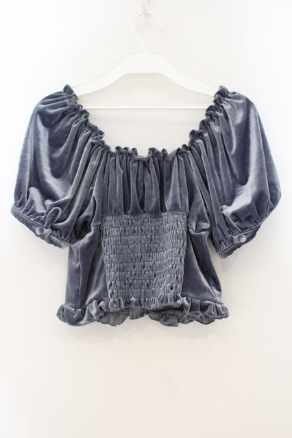 lilLilly / ベロアパフブラウス F ブルー O-26-01-19-024-LO-TO-OW-OS