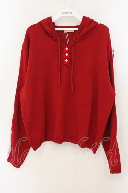 lilLilly / レース配色ニットパーカー F アカ O-26-01-19-016-LO-TO-OW-OS