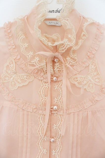MILK / パピヨンレースブラウス オレンジ系ピンク O-26-01-19-049-ML-BL-OW-OS