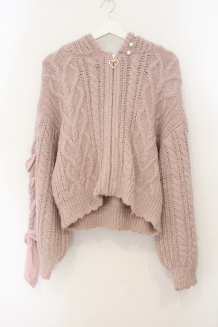 LIZ LISA / パールリボンケーブルパーカー ピンク O-26-01-19-054-LO-TO-OW-OS