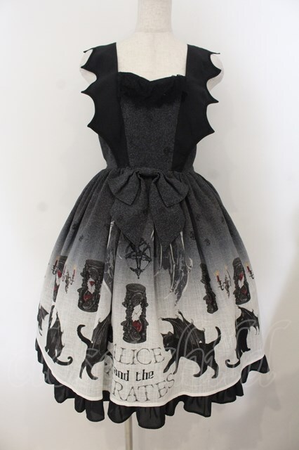 ALICE and the PIRATES / 悪魔猫と終末の砂時計柄ジャンパースカートI クロ O-26-01-19-005-PA-OP-OW-OS [2100080000072352-O-26-01-19-005-PA-OP-OW-OS]