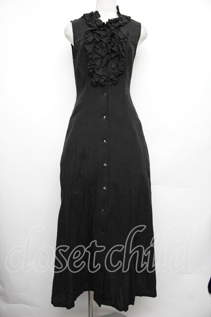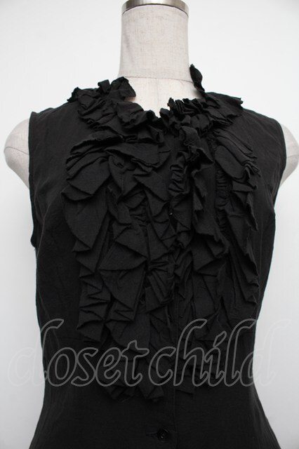 Moi-meme-Moitie / フリルノースリーブロングジレ 黒 S-26-01-18-032-MO-BL-HR-ZS