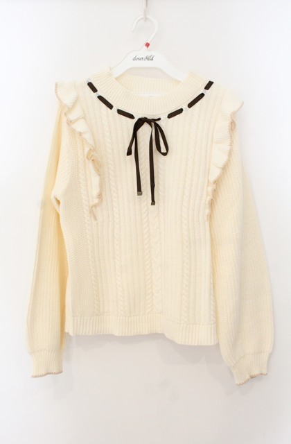 axes femme / バイカラーフリルニットプルオーバー アイボリー O-26-01-19-1011-AX-TO-IG-OS