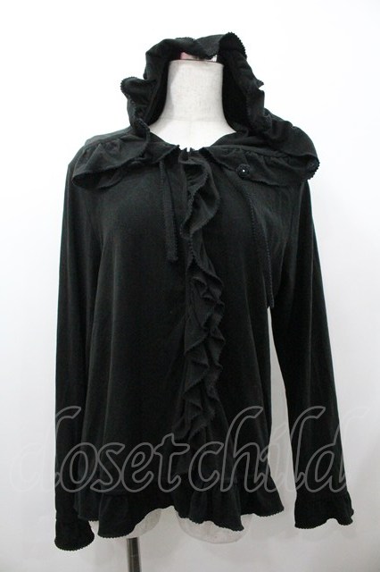 PINK HOUSE / フラワーモチーフフード付きフリルカーディガン 4(L) ブラック I-26-01-18-032-LO-TO-SA-ZI