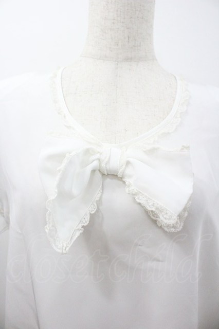 PINK HOUSE / フロントリボン半袖シフォンブラウス 白 I-26-01-18-022-LO-BL-SA-ZI [2100060000043958-I-26-01-18-022-LO-BL-SA-ZI]
