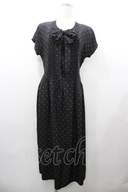 PINK HOUSE / 小花カーネーション総柄半袖ワンピース 黒X赤 I-26-01-18-057-LO-OP-SA-ZI [2100060000043962-I-26-01-18-057-LO-OP-SA-ZI]