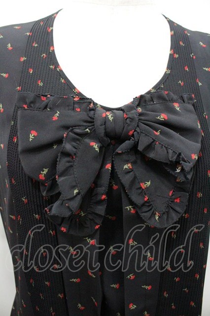 PINK HOUSE / 小花カーネーション総柄半袖ワンピース 黒X赤 I-26-01-18-057-LO-OP-SA-ZI