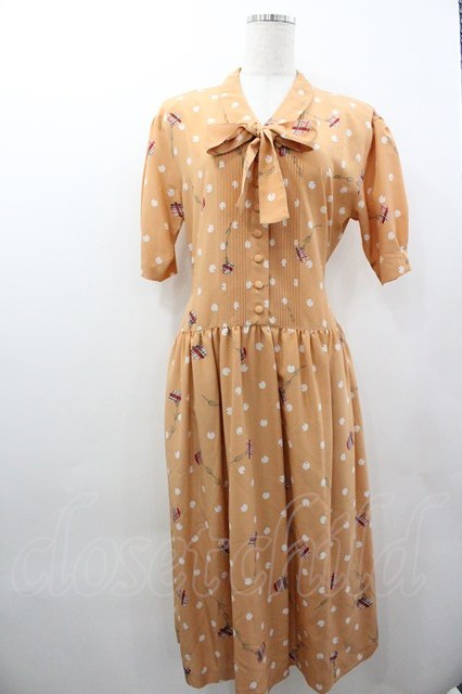 PINK HOUSE / チェックお花柄ワンピース オレンジX白X緑 I-26-01-18-064-LO-OP-SA-ZI