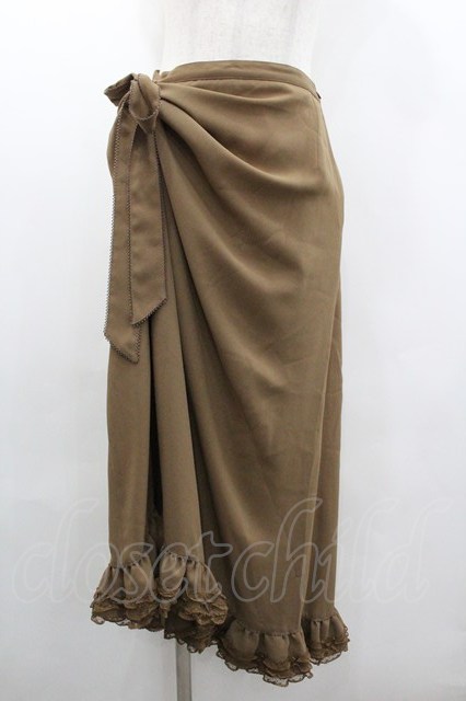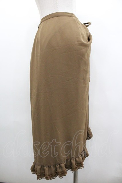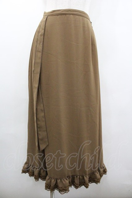 KANEKO ISAO / たくし上げリボン付き裾レースフリルスカート カーキ I-26-01-18-068-EL-SK-SA-ZI [2100060000045360-I-26-01-18-068-EL-SK-SA-ZI]