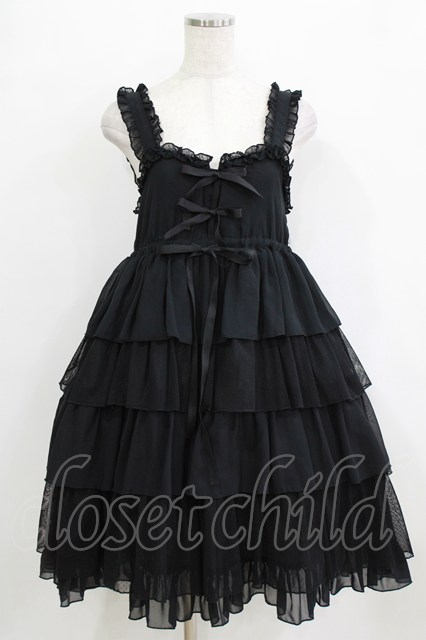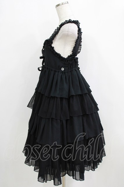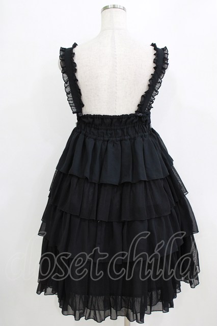 metamorphose / ハイウエスト4段フリルジャンパースカート (ドットチュール) Free ブラック H-26-01-24-020-ME-OP-NS-ZH [2100030000084269-H-26-01-24-020-ME-OP-NS-ZH]