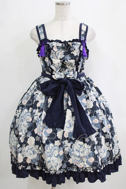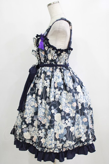 metamorphose / 和柄コサージュ付ジャンパースカート Free ネイビー H-26-01-24-004-ME-OP-NS-ZH [2100030000084265-H-26-01-24-004-ME-OP-NS-ZH]