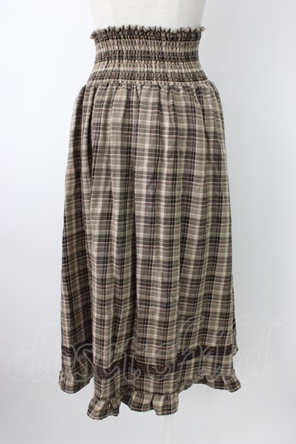 axes femme / チェック柄2wayロングスカート ブラウン T-26-01-21-017-AX-SK-SA-ZT