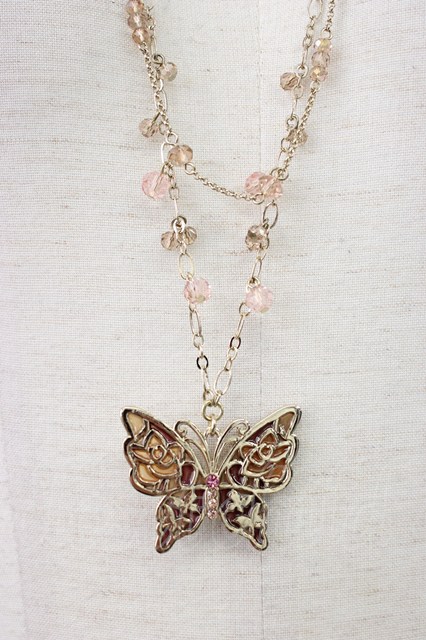 axes femme / ステンドエポ蝶ネックレス アワピンク T-26-01-21-033-AX-AC-SA-ZT
