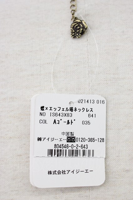 axes femme / 蝶Xエッフェル塔ネックレス ゴールド T-26-01-21-034-AX-AC-SA-ZT