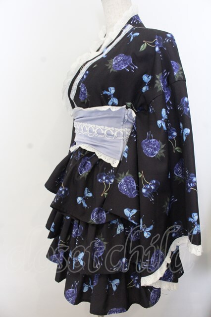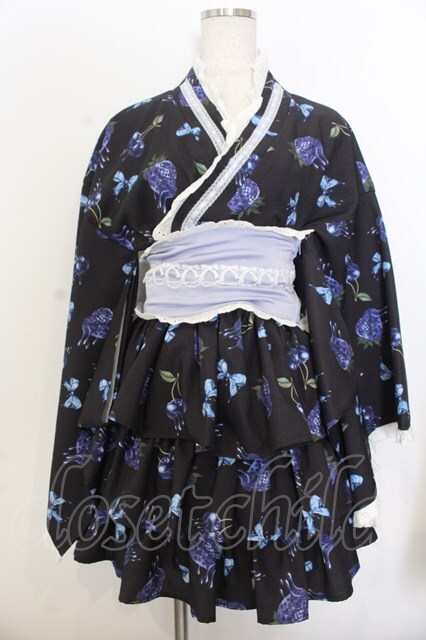 Jamieエーエヌケー / melt strawberry浴衣ワンピース クロ×ブルー O-26-01-20-013-0-OP-IG-OS [2100080000072464-O-26-01-20-013-0-OP-IG-OS]