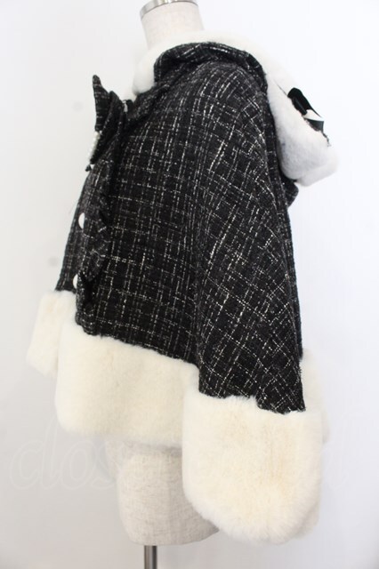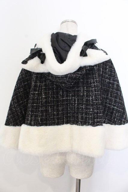 Ank Rouge / ネコちゃんキラキラツイードポンチョ クロ×シロ O-26-01-20-027-CA-CO-IG-OS