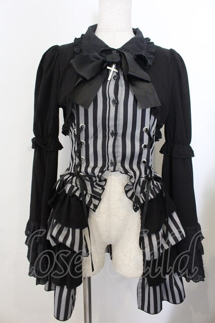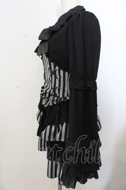 Jamieエーエヌケー / ストライプお姫様(トップス) クロ×グレー O-26-01-20-016-0-BL-IG-OS [2100080000072467-O-26-01-20-016-0-BL-IG-OS]