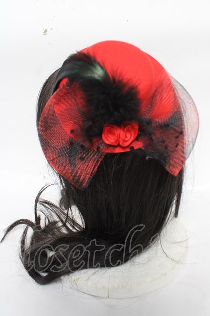 MABLE / バラ羽根付きミニハット 赤 Y-26-04-24-010-GO-AC-SZ-ZY