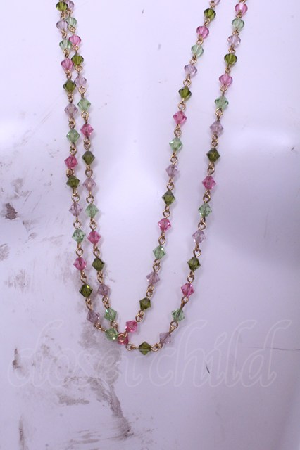 WONDERFUL WORLD / クリスタルビーズネックレス ゴールド×ピンク×グリーン O-26-01-20-1108-LO-SH-IG-OS