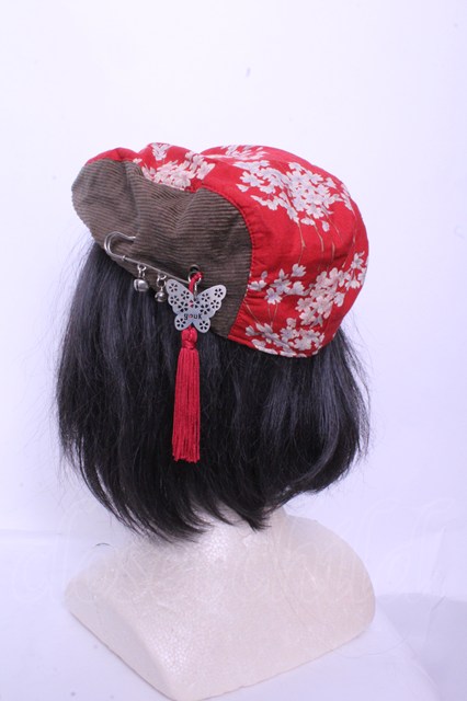 kikou / 和柄切り替えコーデュロイハンチングハット ベージュ×アカ O-26-01-20-1008-GO-AC-IG-OS
