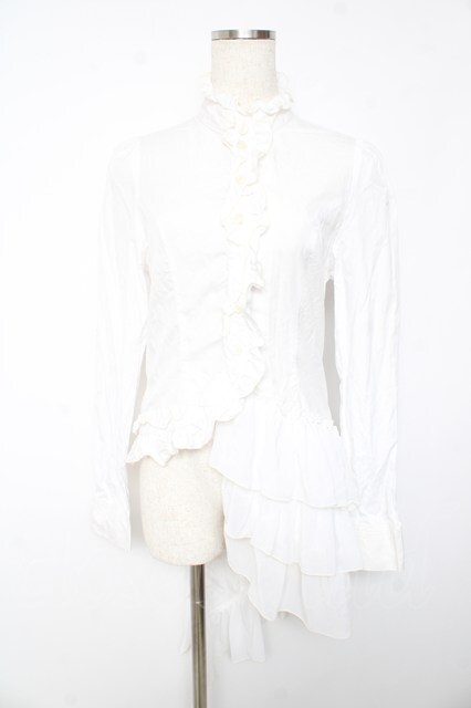 BPN / フリルシフォンアシメブラウス M 白 Y-26-01-22-051-GO-BL-SZ-ZY