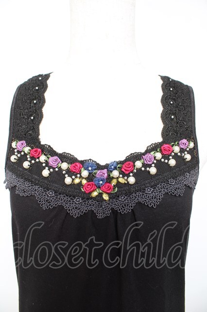 axes femme / ローズ×パールタンク 黒 Y-26-01-22-053-AX-TO-SZ-ZY