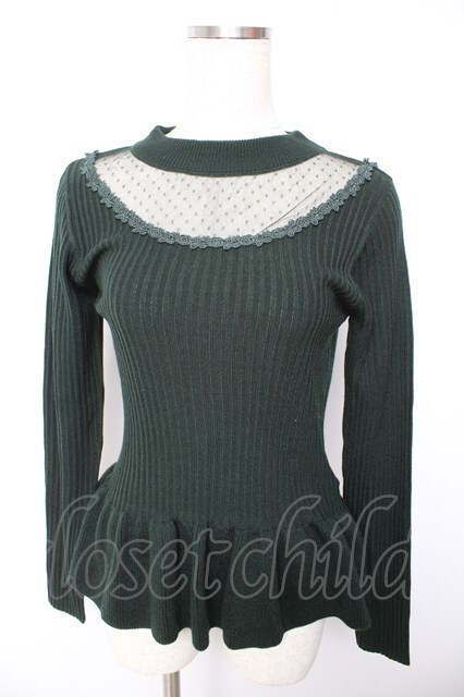 axes femme POETIQUE / デコルテ透けプチスタンドプルオーバー グリーン Y-26-01-22-071-AX-TO-SZ-ZY