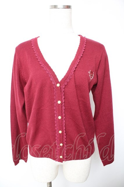 axes femme / バラ刺繍カーディガン M ワイン Y-26-01-22-081-AX-TO-SZ-ZY