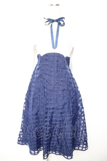 axes femme / シアーチェックドッキングワンピース F 紺 Y-26-01-22-121-AX-OP-SZ-ZY