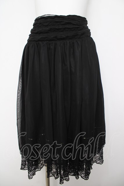 BPN / 裾レースシフォンスカート 黒 Y-26-04-24-152-GO-SK-SZ-ZY