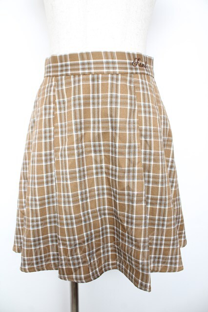 F i.n.t / ロゴ刺繍入りサイドプリーツチェックミニスカート F ベージュ×ホワイト Y-26-01-22-164-CA-SK-SZ-ZY