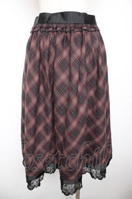 axes femme / タータンチェックスカート M ワイン Y-26-01-22-165-AX-SK-SZ-ZY