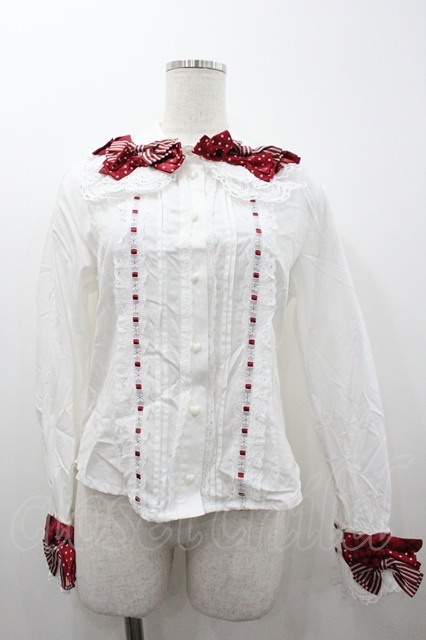 BABY,THE STARS SHINE BRIGHT / MY ANNIVERSARYリボンリボンブラウス 白X赤 I-26-01-20-005-BA-BL-SA-ZI