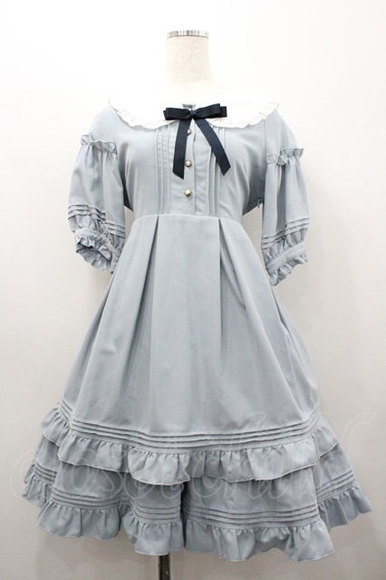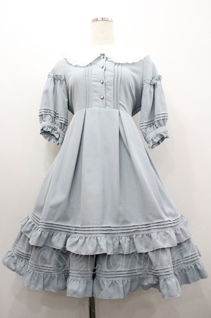 Amavel / Heroineパフスリーブミドル丈ワンピース ブルー I-26-01-20-057-CA-OP-SA-ZI