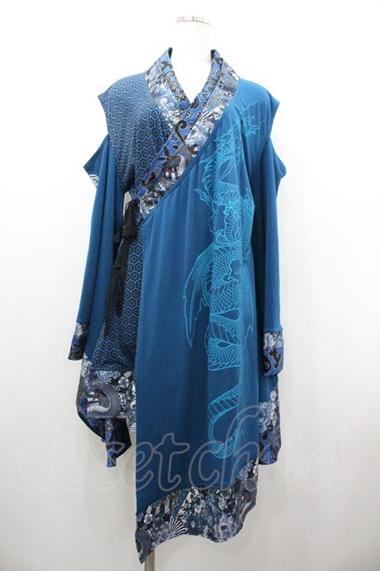 Qutie Frash / /着物袖ロングカーディガン 青 I-26-01-20-076-QU-TO-SA-ZI