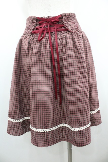 axes femme / ウエスト刺繍入チェック柄スカート ボルドーX赤 I-26-01-20-085-AX-SK-SA-ZI [2100060000025337-I-26-01-20-085-AX-SK-SA-ZI]