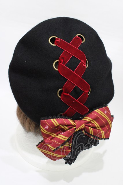 ATELIER PIERROT / ハリー・ポッター リボンブローチ付きレースアップベレー帽 グリフィンドール(レッド) H-26-01-25-1003-EL-AC-KB-ZH