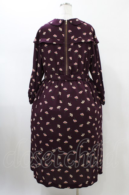 Jane Marple Dans Le Salon / Floating flowers afternoon dress ワイン H-26-01-25-1017-JM-OP-KB-ZH